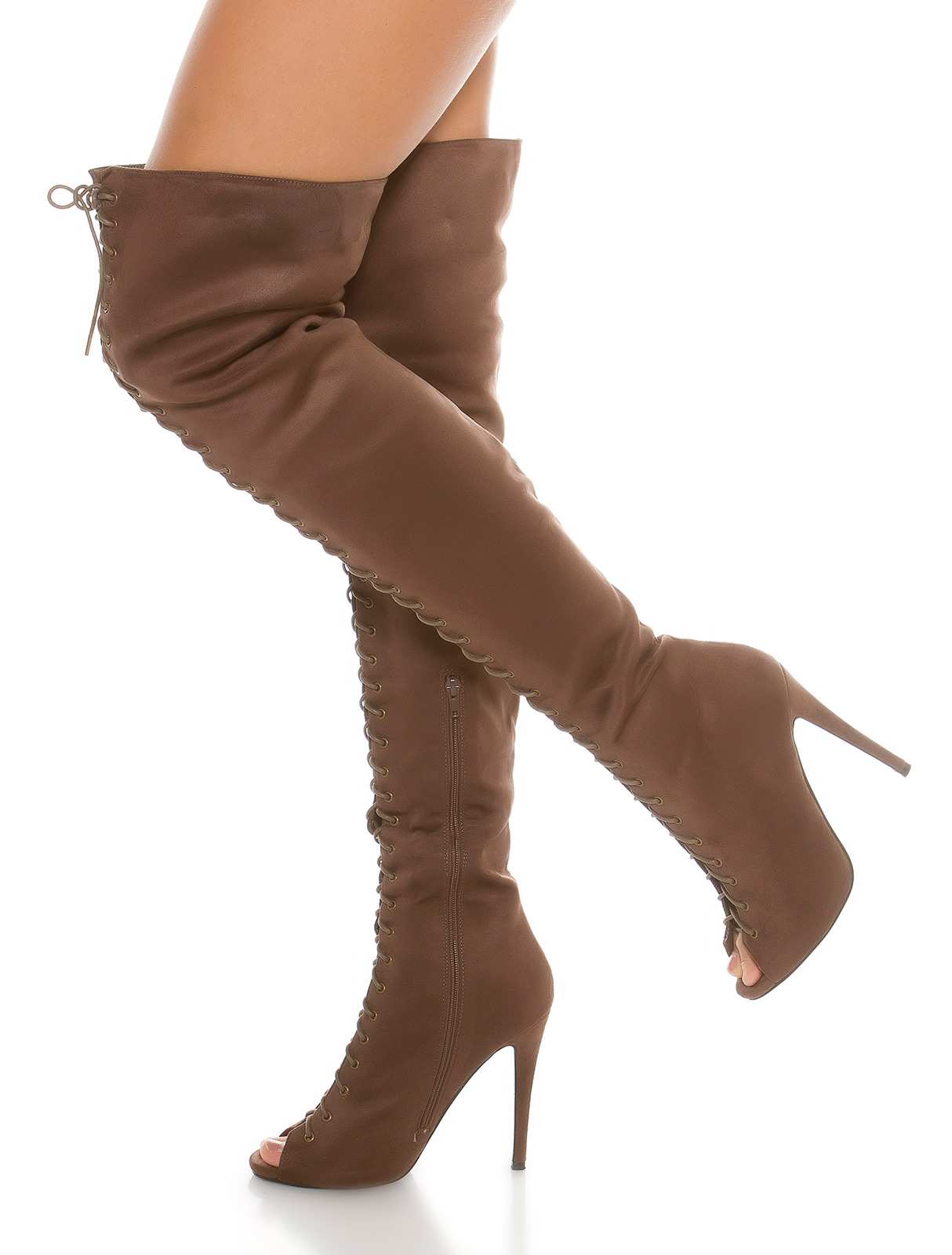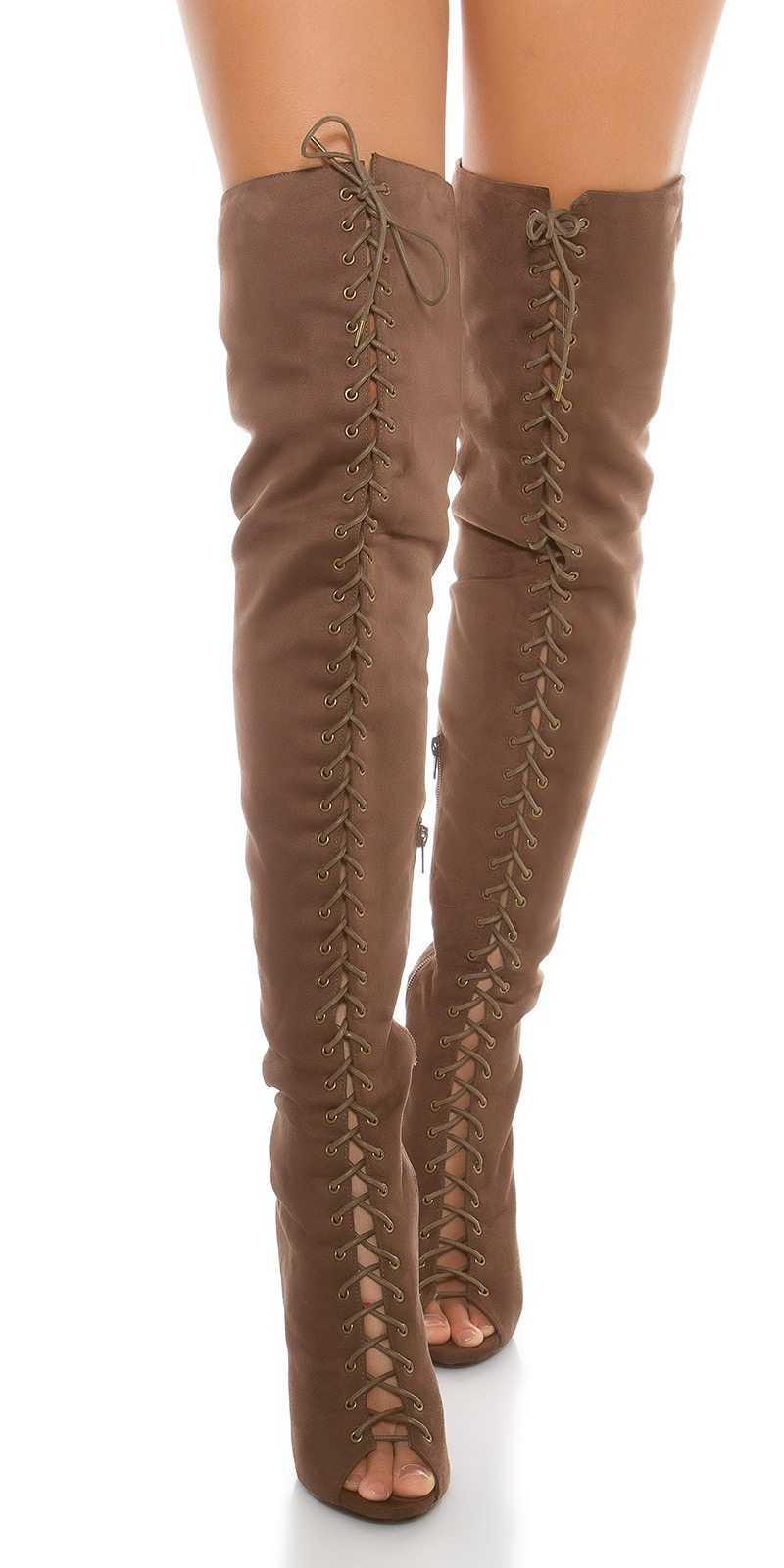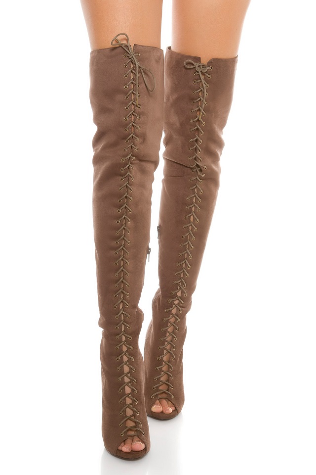 Cizme dama Snur peste genunchi Maro care se leaga pe partea frontala.