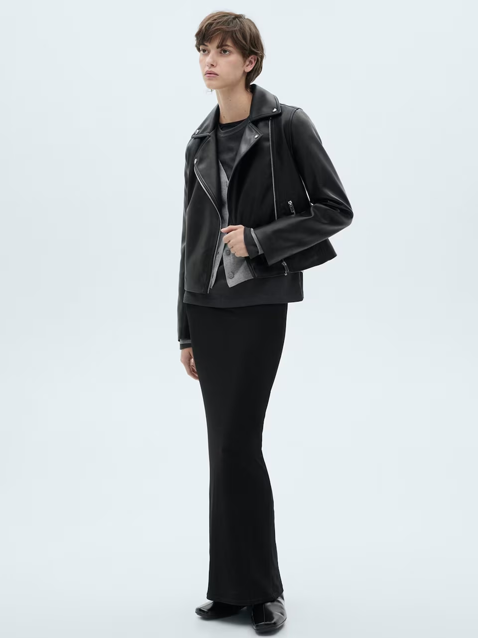 Geaca Dama Piele MNG Biker Black are croiala regular fit,