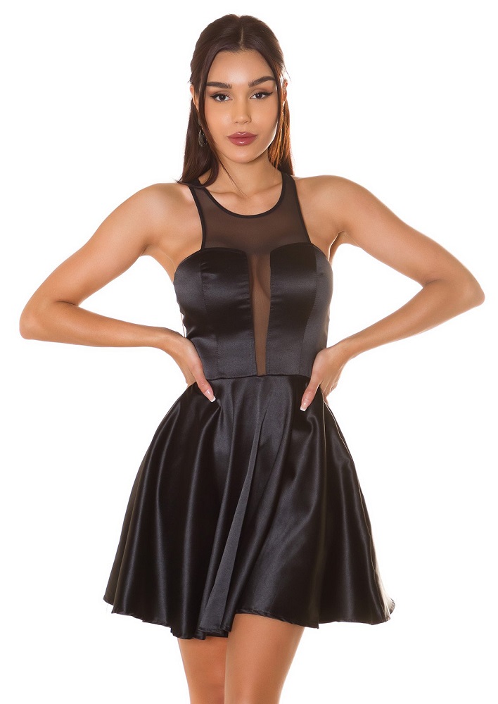 Rochie scurta neagra Elysees are bustul din tull transparent,